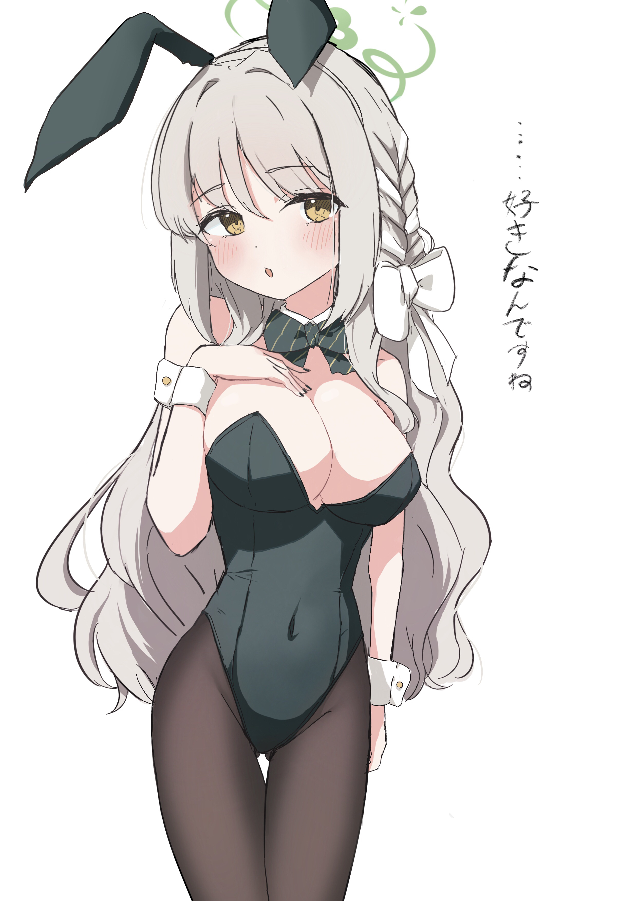 1girlalternate costumebreastsbrown pantyhosejapanese textlarge breastslooking at viewerpantyhoseplayboy bunnysolo