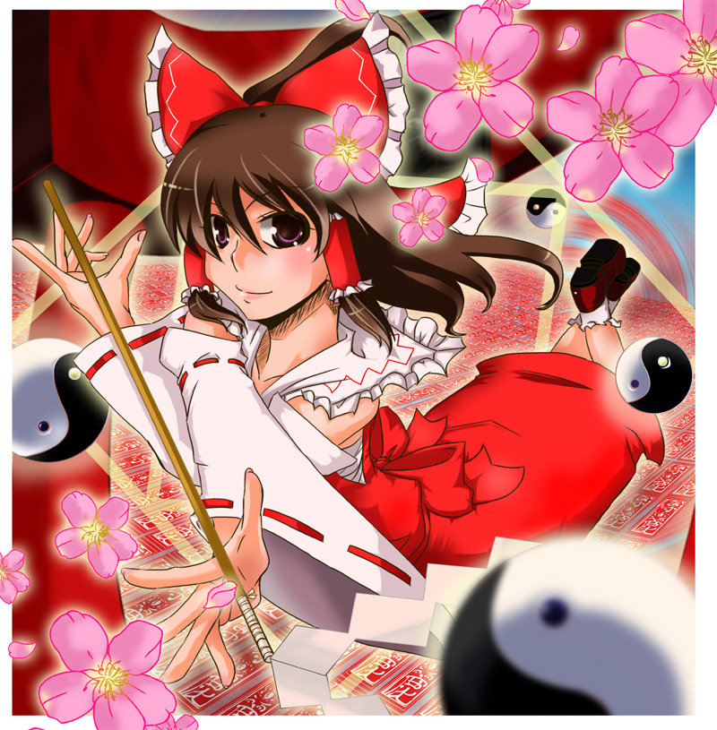 1girlbowbrown hairdetached sleevesfemale focusfrilled hair tubesfrillshair bowhair tubesjapanese clothesmikosolo