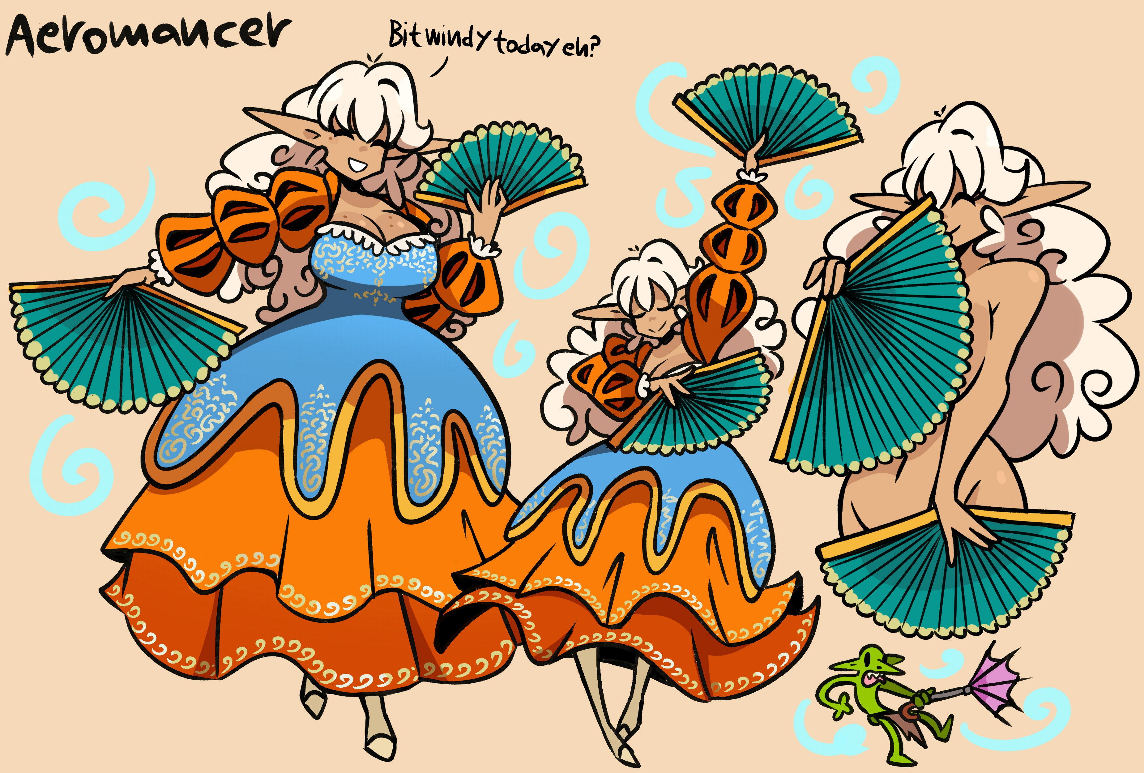 xerah (king's raid), king's raid, commentary request, highres, official art, 1girl, armor, armored boots, black hair, blue dress, boots, breasts, cleavage, detached sleeves, dress, feathers, floating, floating object, floating weapon, full body, gauntlets, gold trim, hair bun, high heel boots, high heels, ji yu lee, layered dress, medium breasts, official alternate costume, puffy detached sleeves, puffy short sleeves, puffy sleeves, short sleeves, shoulder armor, single hair bun, smile, solo, white dress, white feathers, yellow eyes