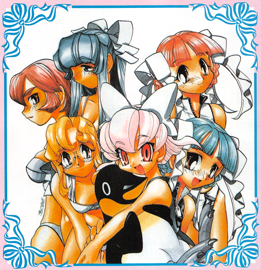 1990s (style)6+girlsbikinibirdblack eyesblonde hairblue hairbowbrown eyesgrey hairhair bowlong hairlooking at viewermultiple girlsopen mouthpenguinpink eyespink hairprofilered hairretro artstyleround eyewearsemi-rimless eyewearshort hairsmileswimsuitwhite bikini