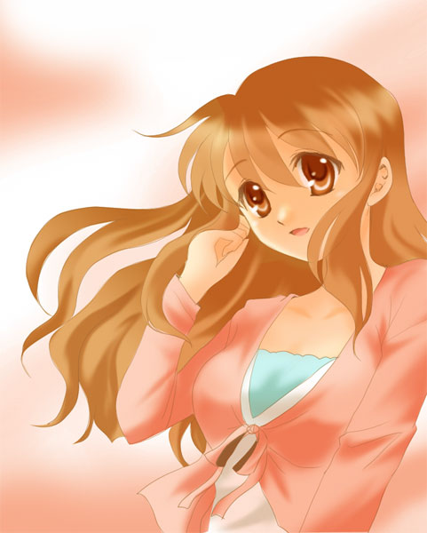 :o00s1girlblonde hairblushcollarbonefemale focusfront-tie tophead tiltlong sleeveslooking at viewerparted lipssimple backgroundsolotaremewhite background