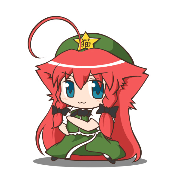 :31girlahogeanimal earsblue eyesbraidcat earscat girlchibifemale focusfull bodyhair ribbonhatlong hairred hairribbonsimple backgroundskirtsolotwin braidswhite background