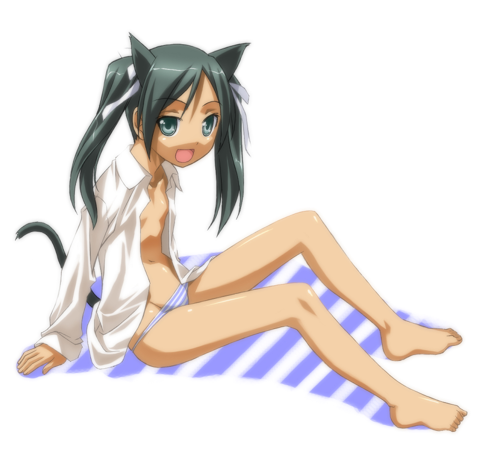 00s1girlanimal earsbarefootblack haircat earscat tailcollarbonefeetfemale focusflat chesthair ornamentnavelopen clothesopen mouthopen shirtpantiesshiny clothesshiny skinshirtsimple backgroundsittingsmilesolosolo focusstriped clothesstriped pantiestailtantonguetwintailsunderwearwhite backgroundwhite shirt