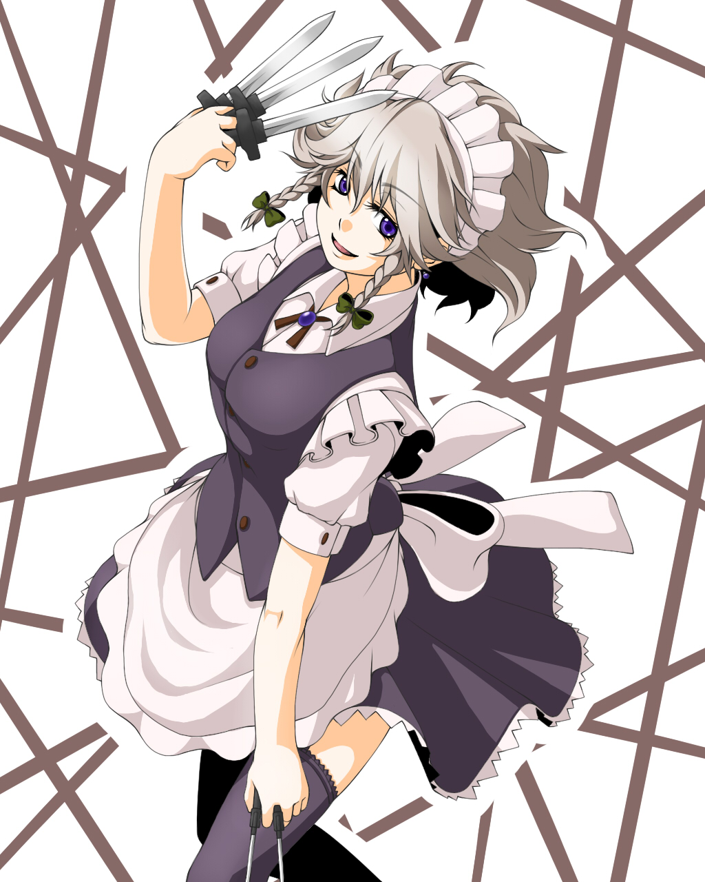 1girlblack thighhighsbraidfemale focusknifesolothighhighsthrowing knifetwin braidsweaponzettai ryouiki