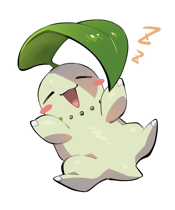 1boyblushblush stickersgen 2 pokemonleafno humansopen mouthpokemon (creature)pokemon focussimple backgroundsolotailwhite backgroundzzz