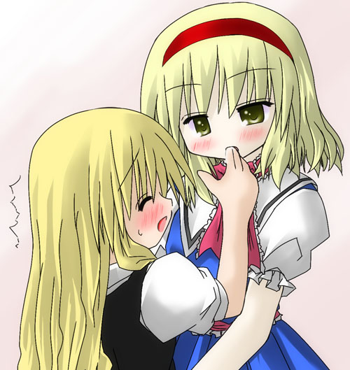 misumi uika, misumi uika (caged singer), togawa sakiko, togawa sakiko (master of melodia), arknights, translation request, 2girls, 55ddee, animal ears, between legs, black dress, black jacket, black shorts, blonde hair, blue hair, blush, dog ears, dog girl, dog tail, dress, horns, jacket, long hair, long sleeves, maid, maid headdress, medium hair, multiple girls, purple eyes, shorts, sidelocks, simple background, tail, white background, yellow eyes, yuri