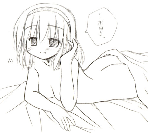 buriki, alice margatroid, konpaku youmu, touhou, translated, 1girl, ?, blood, female focus, lipstick, makeup, monochrome, nosebleed, sepia, solo, spot color