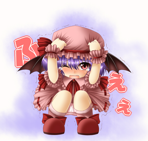 1girlcharisma guardcoweringfemale focushatone eye closedpantiespantyshotpink pantiessittingsolosquattingtearsunderwearwincewingswink