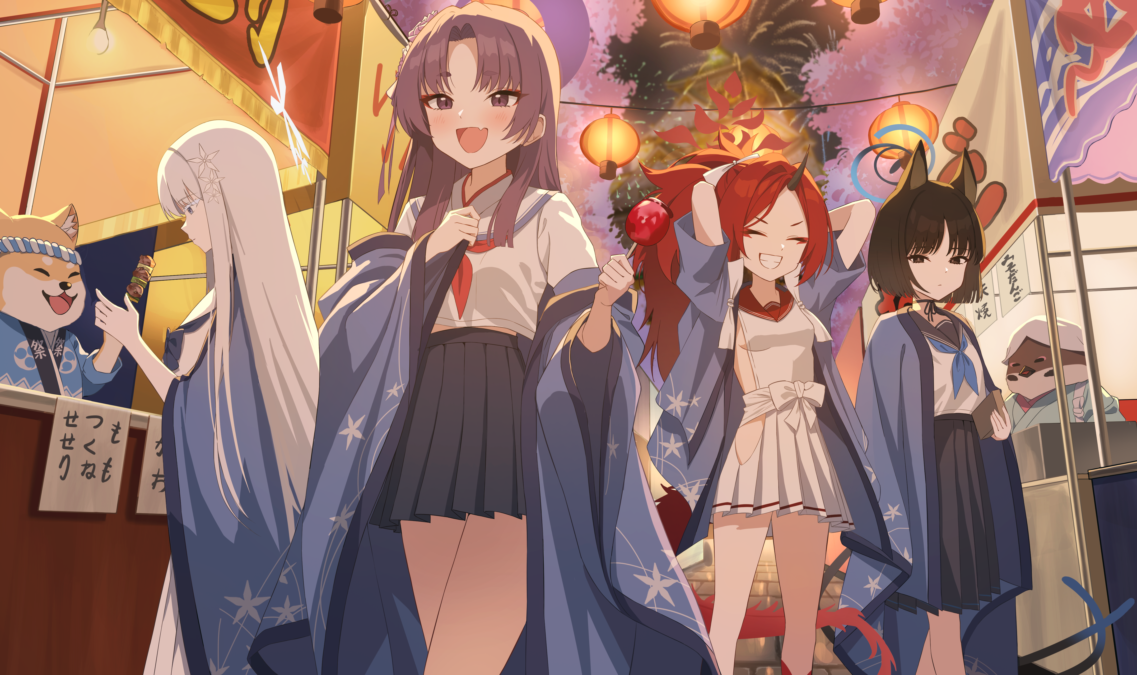 :d1boy4girlsanimal earsblack hairblue eyesblue kimonoblue neckerchiefblue skirtblushbreastsbrown eyesbrown haircandy appleclosed eyescolored eyelashesdogdresseyeshadowfangfoodglowinggrinhaloholdingholding foodhornshyakkaryouran (blue archive)japanese clotheskimonolanternlong hairmakeupmultiple girlsneckerchiefopen mouthpleated skirtponytailred eyeshadowred hairred neckerchiefschool uniformserafukushirtsignsingle hornskirtsmall breastssmileteethtonguevery long hairwhite dresswhite hairwhite halowhite shirt