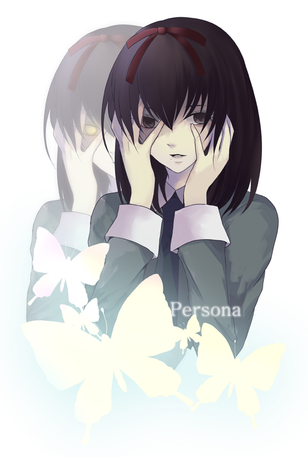 1girlblack hairbugbutterflyfemale focushair ribboninsectribbonschool uniformshort hairsolost. hermelin school uniformyellow eyes