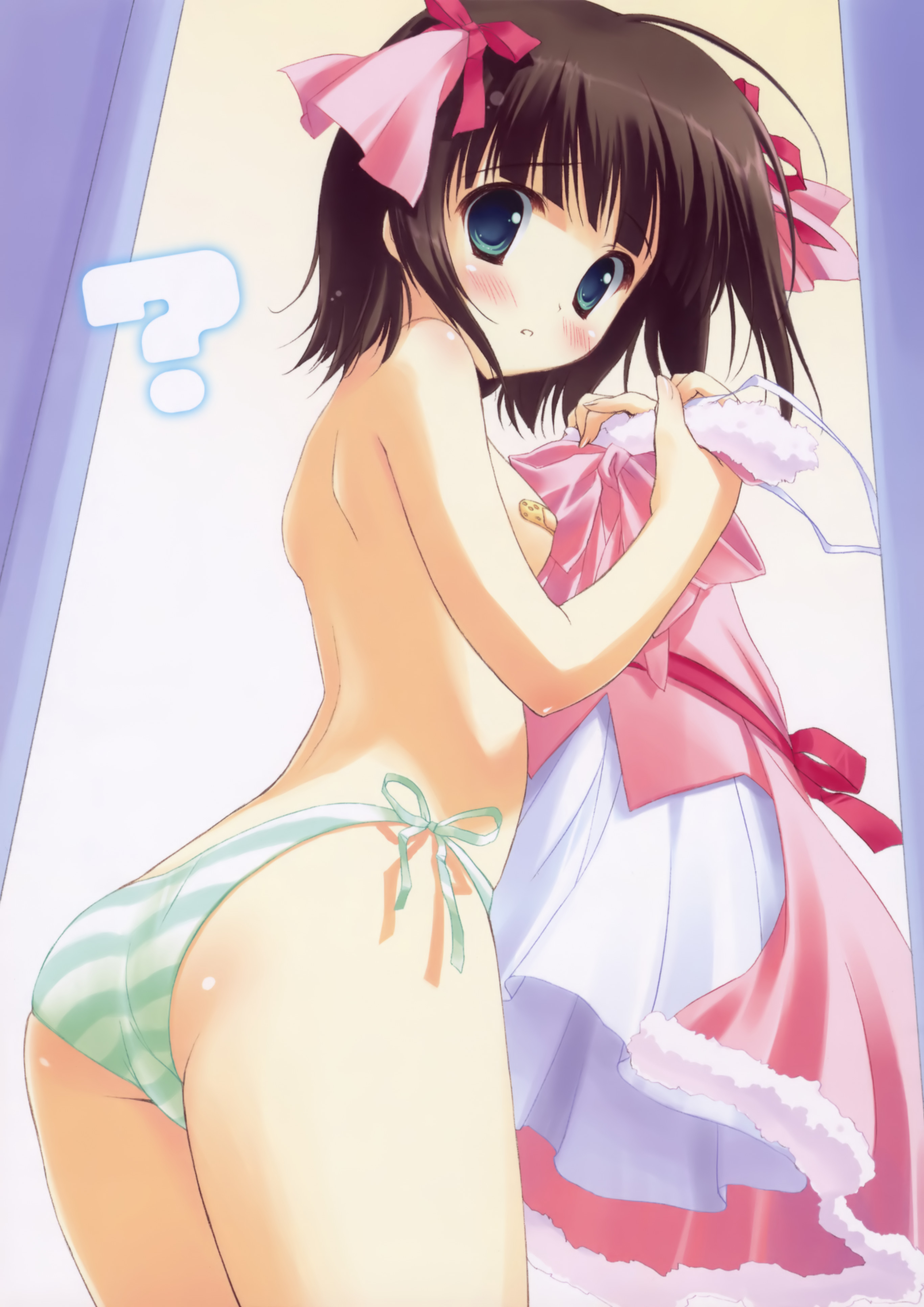 00s1boy1girlassbandaidbandaids on nipplesblue eyesblushbrown haircute & girly (idolmaster)dressfemale focushair ribbonlooking at viewermaebaripantiespastiespink ribbonribbonshort hairside-tie pantiessolostriped clothesstriped pantiesunderwear
