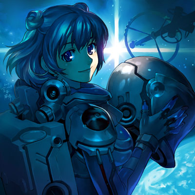 1girldouble bunfemale focushelmetlooking backsmilesolospacespacesuitunworn headwearunworn helmet