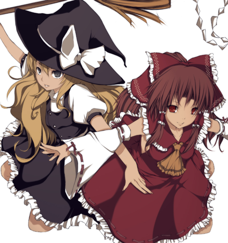 2girlsblack dressblack eyesblonde hairbowbroomdark skindark-skinned femaledetached sleevesdressfemale focusfrilled dressfrillshair bowhair tubeshatlong hairmultiple girlspuffy sleevesred eyesred hairshort sleeveswhite bowwitchwitch hat