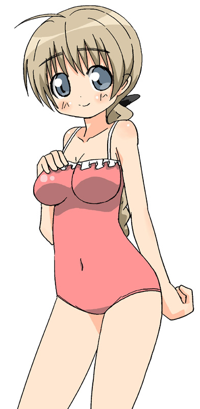00s1girlblue eyesbraidbreastsbrown hairfemale focusone-piece swimsuitsimple backgroundsingle braidsoloswimsuit