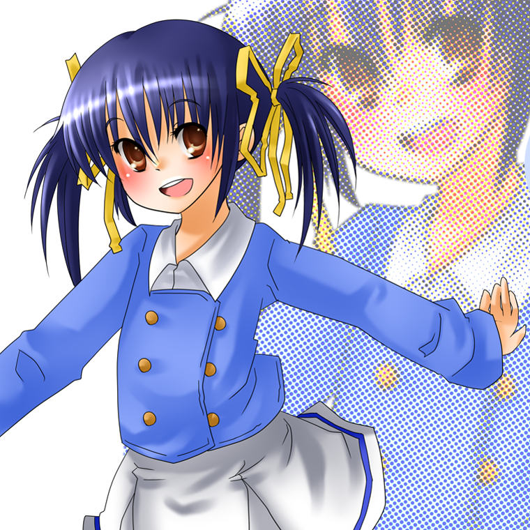 00s1girlblue hairbrown eyesfemale focusopen mouthoutstretched armsshort hairsolospread armstwintailszoom layer