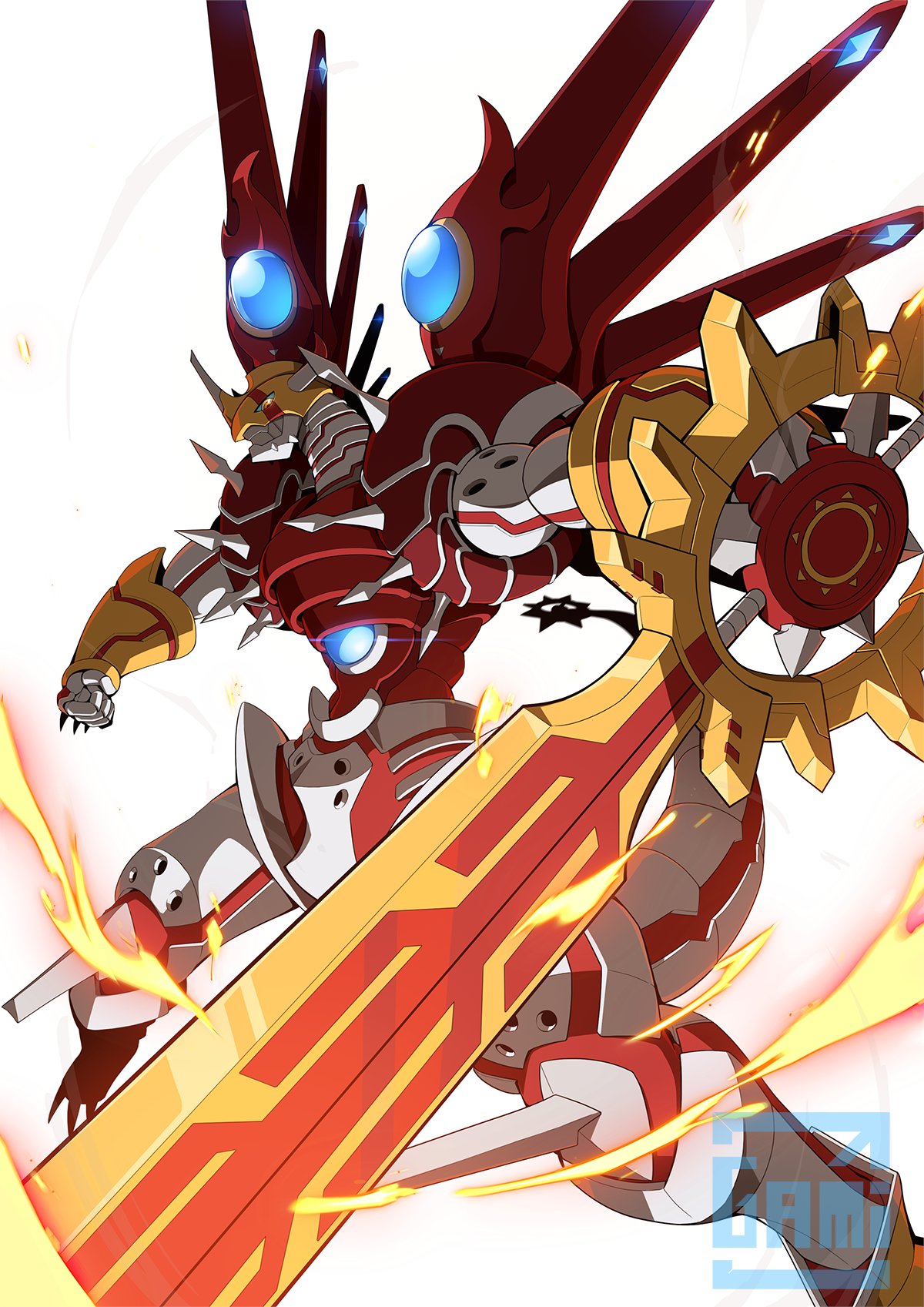 digimon (creature)double bladedragonfireholdingholding weaponmechanical wingssimple backgroundweaponwhite backgroundwingsyellow eyes