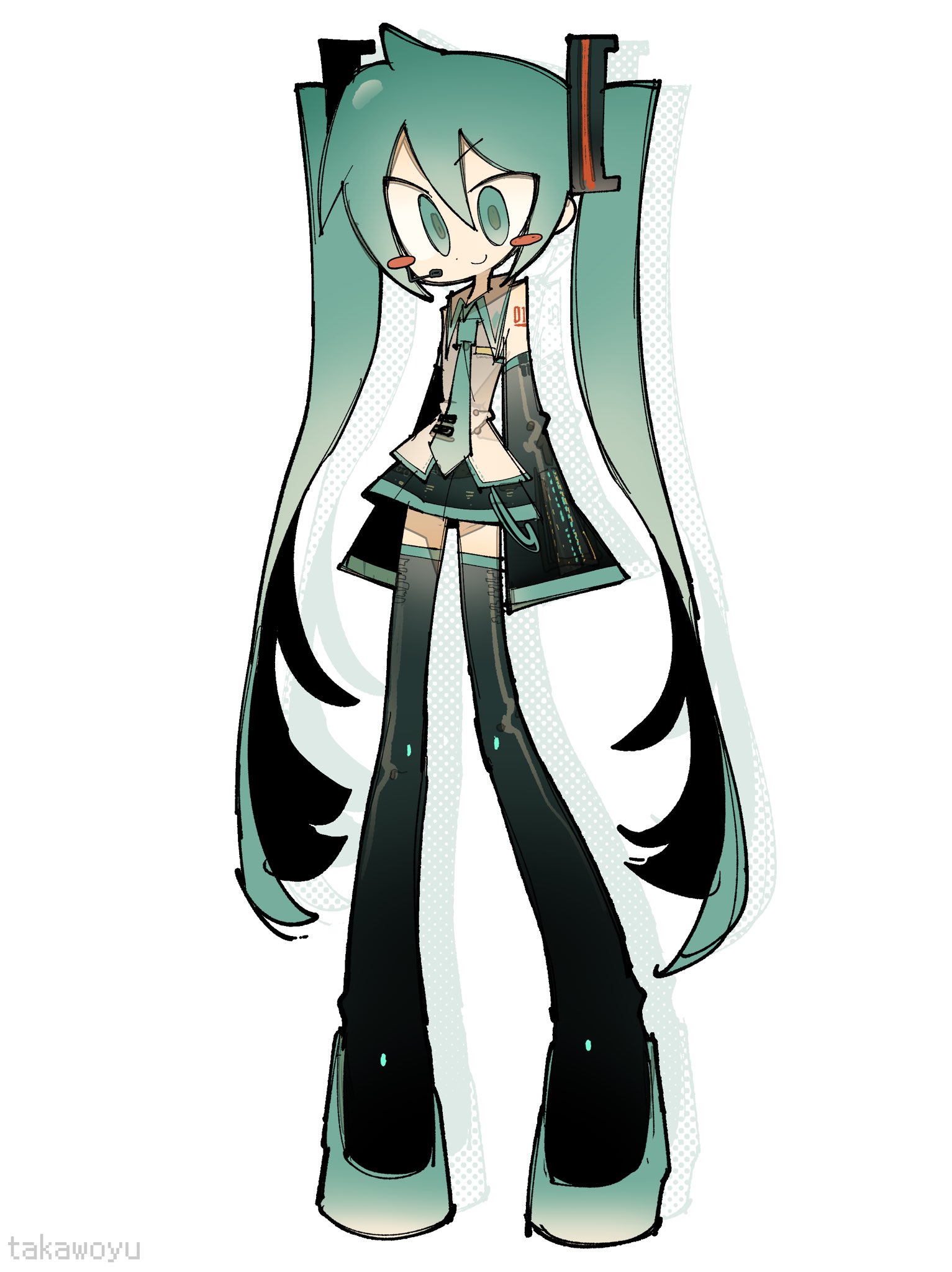 1girlahogeaqua eyesaqua hairaqua necktieaqua trimarms at sidesartist namebare shouldersblack bootsblack skirtblack sleevesblush stickersbootsclosed mouthcollared shirtcolored shoe solescross-eyeddetached sleevesdot nosedouble-parted bangsflat chestfull bodygrey shirthair between eyeshair ornamenthalftonehalftone backgroundheadsetlong hairminiskirtnecktienumber tattoopleated skirtshirtshoulder tattoosimple backgroundskirtsleevelesssleeveless shirtsleeves past fingerssleeves past wristssmilesolostandingtattoothigh bootsthighhighstie cliptwintailsvery long hairwhite backgroundzettai ryouiki