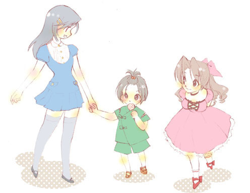 1990s (style)3girlsaged downblack hairbowbrown hairchilddresseatingfull bodyhair bobbleshair ornamenthair ribbonhaircliphappyjapanese clothesmary janesmultiple girlspetticoatpink bowpink dressretro artstyleribbonsandalsshoessocksthighhighszettai ryouiki