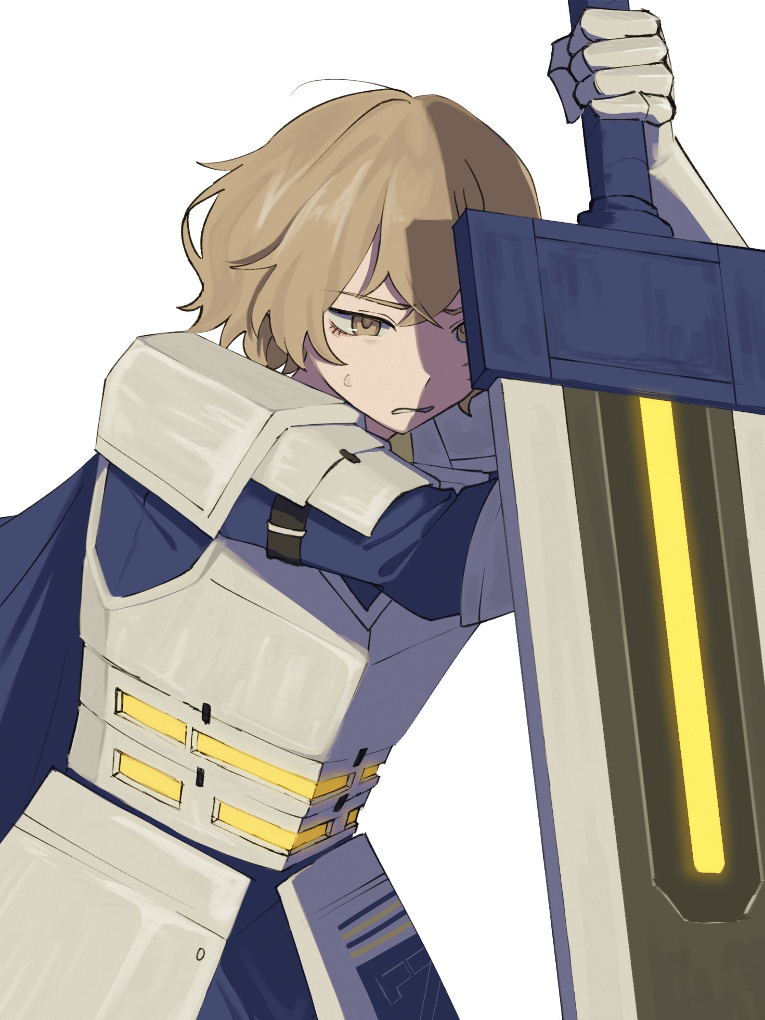 1boyalternate costumearmorarmored glovesblonde hairblue capeblue shirtbreastplatecapeclosed mouthcowboy shothair between eyesholdingholding swordholding weaponknightmale focusmuokakutokushirtshort hairsimple backgroundsolosweatswordupper bodyweaponwhite backgroundyellow eyeszwei association west uniform