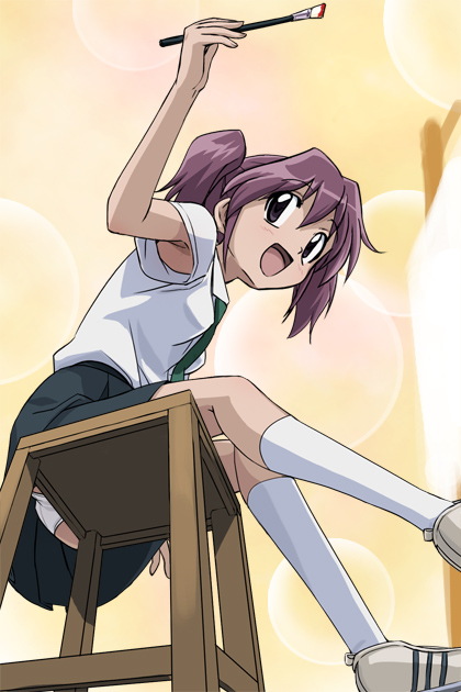 kusakabe misao, lucky star, lowres, 00s, 1girl, barefoot, brown hair, cum, fang, feet, footjob, oekaki, panties, pantyshot, penis, school uniform, serafuku, solo focus, uncensored, underwear, yellow eyes