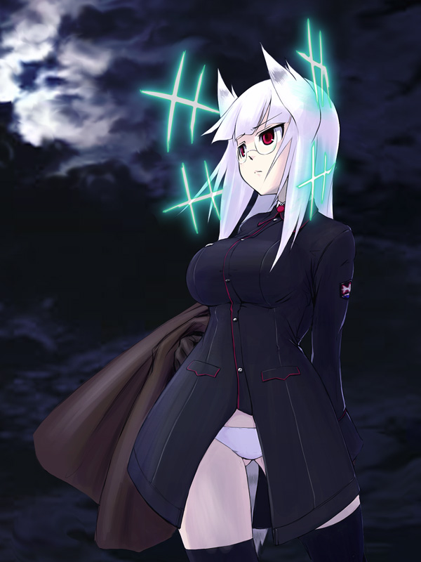 00s1girlbreastsfemale focusglasseshirschgeweih antennaslarge breastspantiesred eyessolothighhighsunderwearwhite hair
