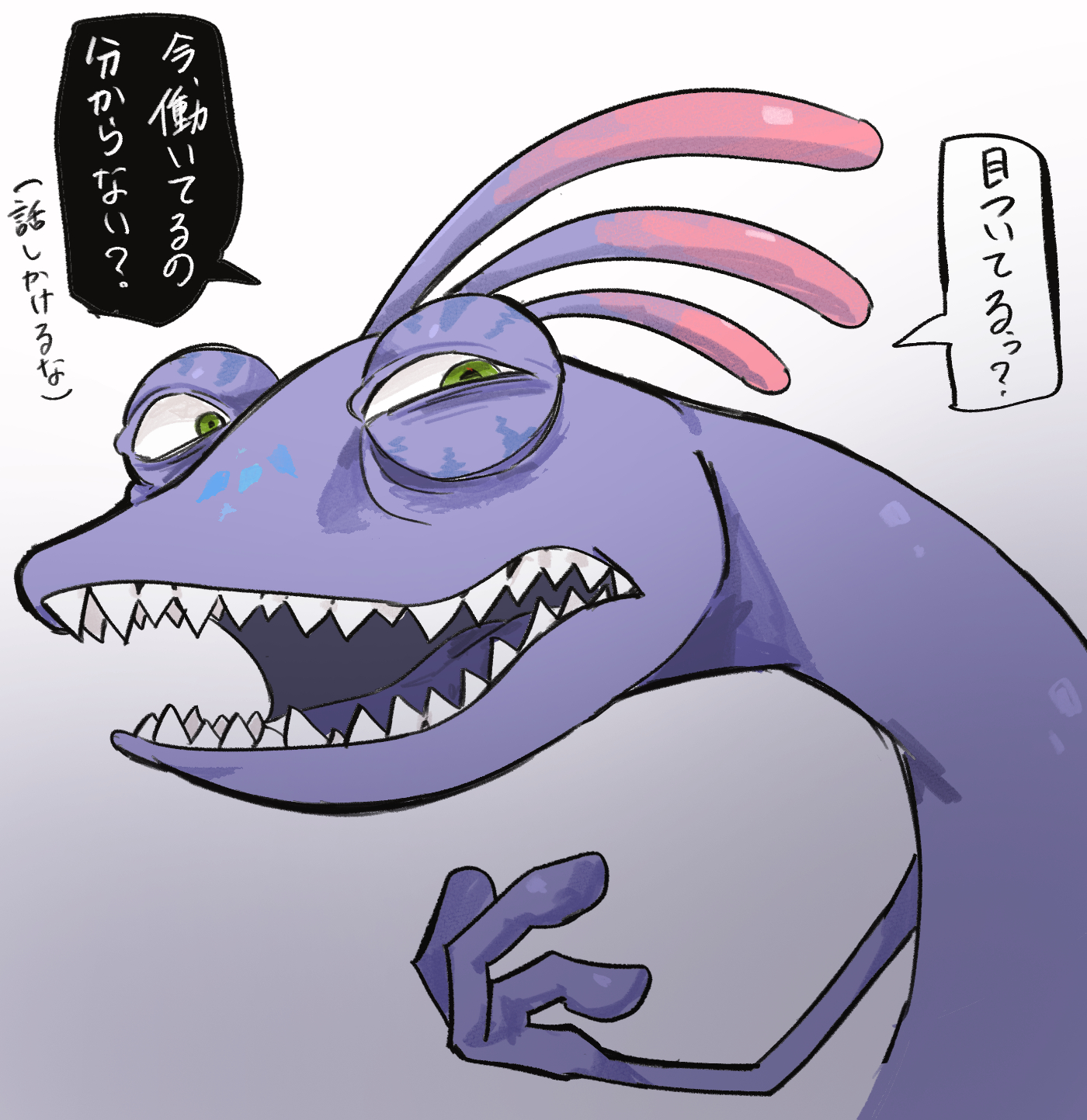 1boycolored skinglassesgreen eyeslizard tailmale focusmonsterno humanspurple skinsharp teethsimple backgroundslit pupilstailteethuser xhre4557white background