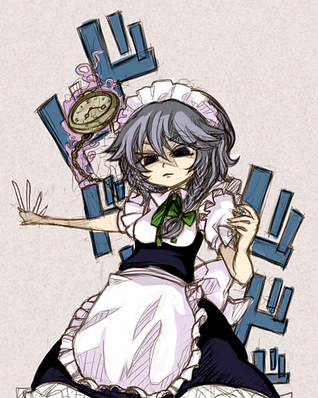 1girlbetween fingersfemale focusholdingknifemaidpocket watchshort hairsolothrowing knifewatchweapon