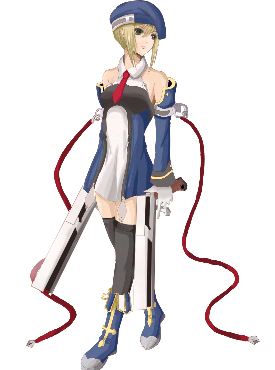1girlberetblonde hairblue bootsbootsdetached sleevesdressdual wieldingfemale focusglovesgreen eyesgunhands on own hipshatholdingnecktieribbonshort dressshort hairsimple backgroundsolothighhighsweaponzettai ryouiki