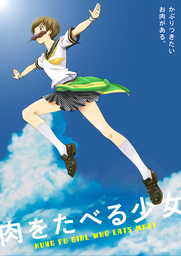 kouda tomohiro, 1girl, blue eyes, breasts, cleavage, covered erect nipples, female focus, high kick, kicking, red hair, solo, sword, underboob, weapon
