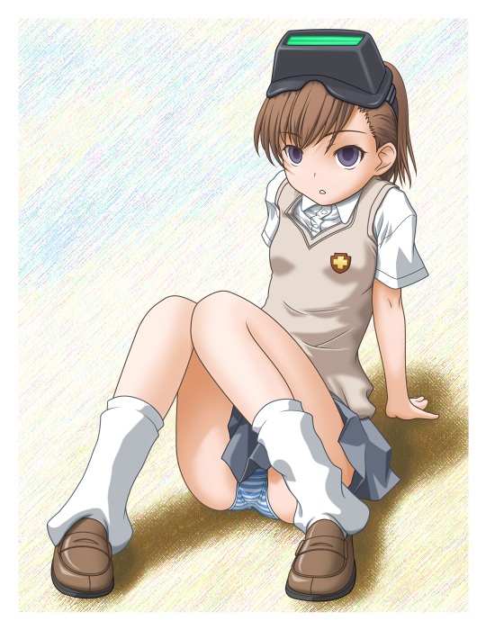 00sarm supportassbreastsbrown hairhead-mounted displayloose sockspantiesschool uniformshort hairsittingskirtsmall breastssockssolostriped clothesstriped pantiesunderwear