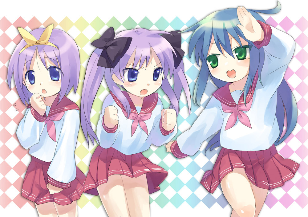 00s3girlsahogeantenna hairblue eyesfeet out of framefemale focusgreen eyeshair ribbonhairbandlong hairlong sleevesmolemole under eyemultiple girlsribbonryouou school uniformschool uniformserafukushiny skinsiblingssistersskirtstandingtwinstwintails