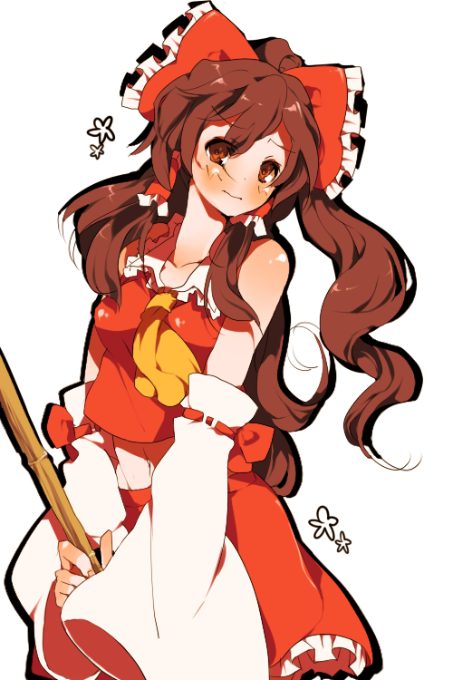 1girlblushbreastsdetached sleevesfemale focusjapanese clothesmidriffmikonavelribbonsimple backgroundskirtsolowhite background