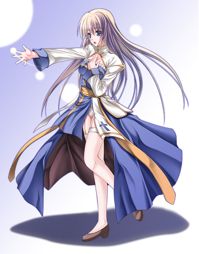 1girlblonde hairblue eyesbreastsbrown shoescleavagefemale focusgarter belthigh heelslong hairmedium breastspantiespantyshotshoessolothighhighsunderwear