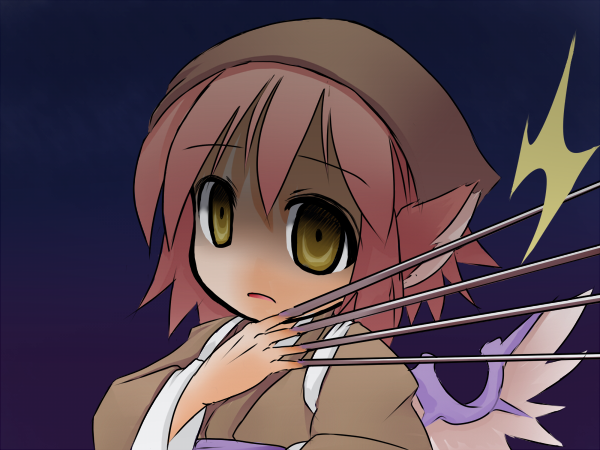 1girlanimal earsblue backgroundclawsempty eyesfemale focusfingernailsjapanese clotheslong fingernailsnail (hardware)pink hairshaded faceshort hairsimple backgroundsolotasukiwingsyellow eyes