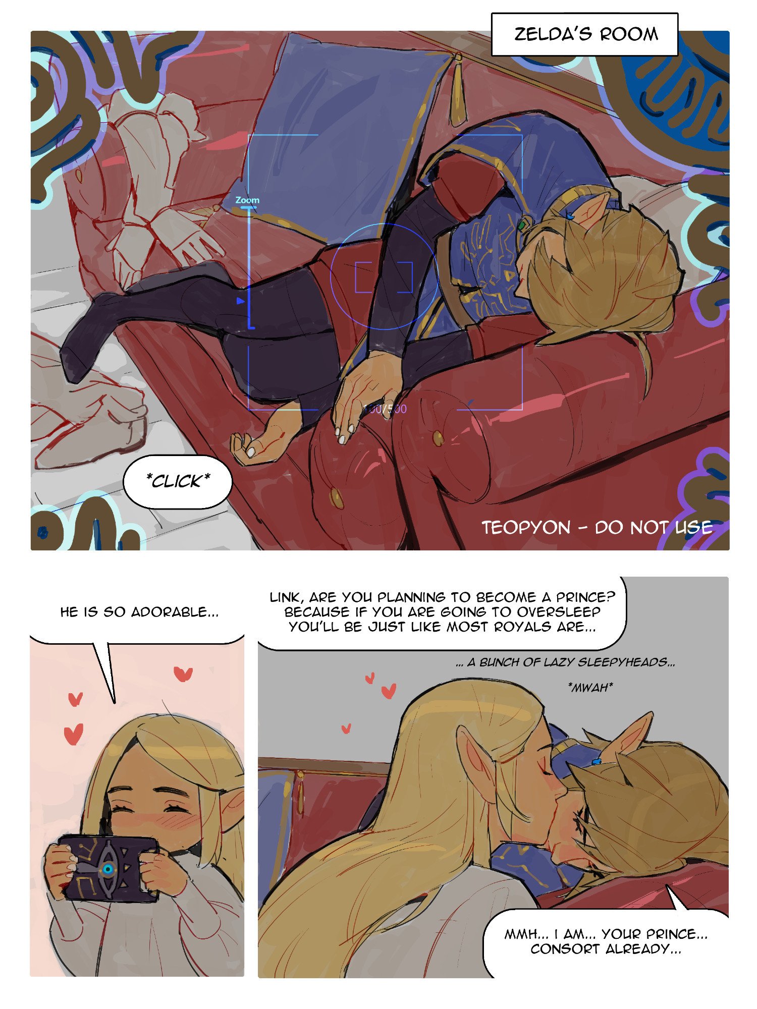 1boy1girlartist nameblack pantsblonde hairblushbootsborderclosed eyescouchcoupleearringsenglish textfull bodyglovesgold trimheterojewelrykisskissing cheeklong hairlyingmedium hairmilitary uniformofficial alternate costumeon sidepantsparted bangspillowpointy earsred shortsroyal guard set (zelda)shirtshortssidelockssleepingsmileunworn bootsunworn glovesupper bodywhite borderwhite shirt