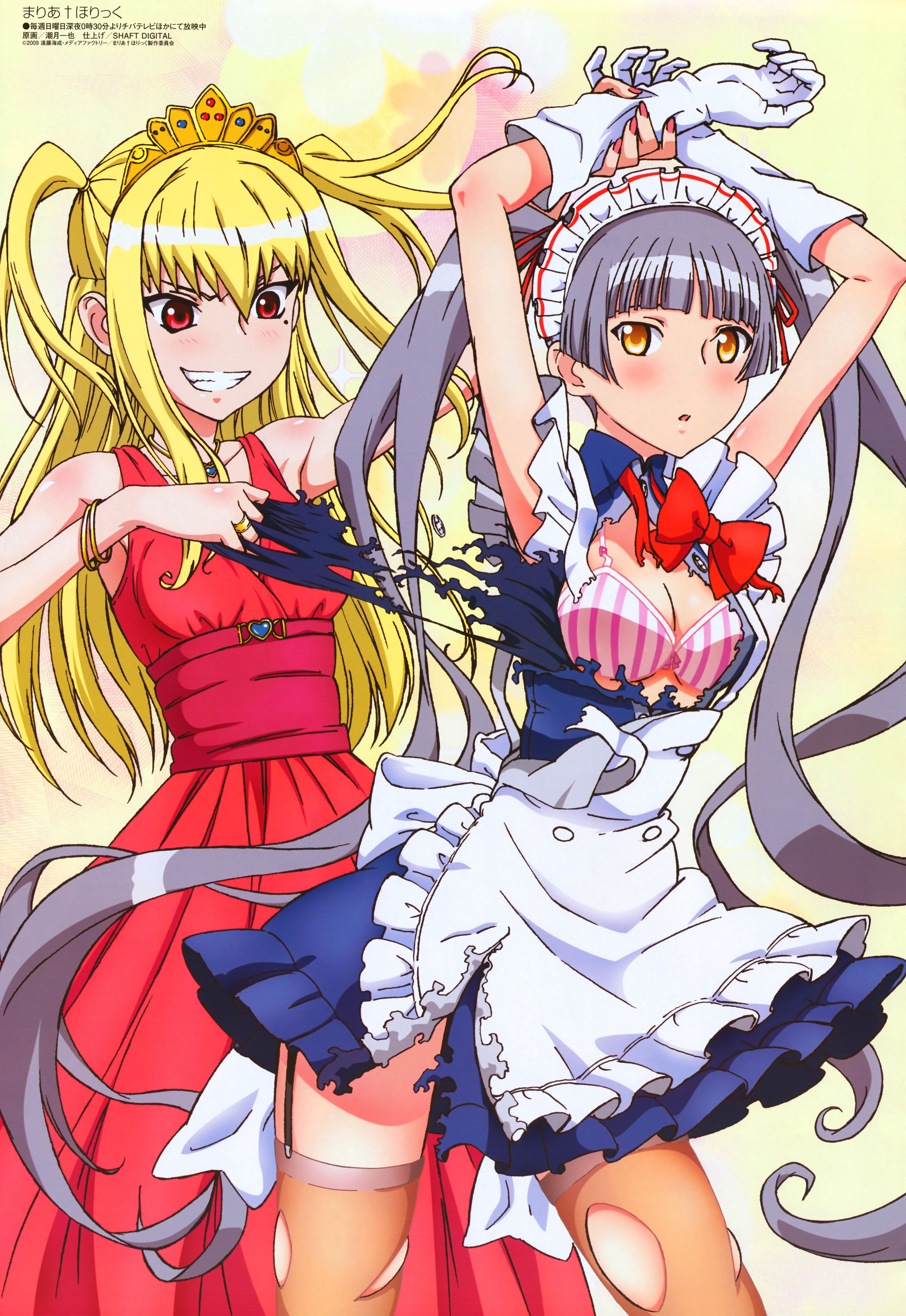 00s1boy1girlblunt bangsblushbowbracowboy shotdressgarter strapsgloveshairbandheadbandlingerielong hairmaidmolemole under eyered eyesstriped brastriped clothesthighhighstiaratorn clothestorn dresstraptwintailstwo side upunderwearvertical-striped bravertical-striped clothesvery long hairyellow eyes