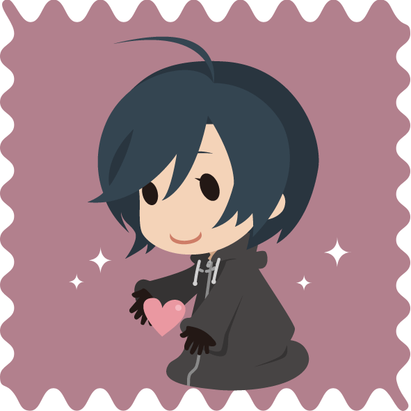 1girlblack coat (kingdom hearts)black hairchibifemale focusgloveshearthoodsimple backgroundsmilesolo