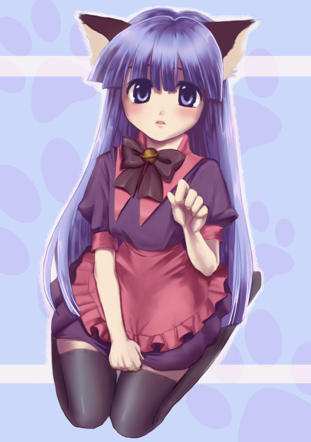 00sanimal earsbellblack thighhighsbowcat earsdresspurple eyespurple hairsolothighhighszettai ryouiki