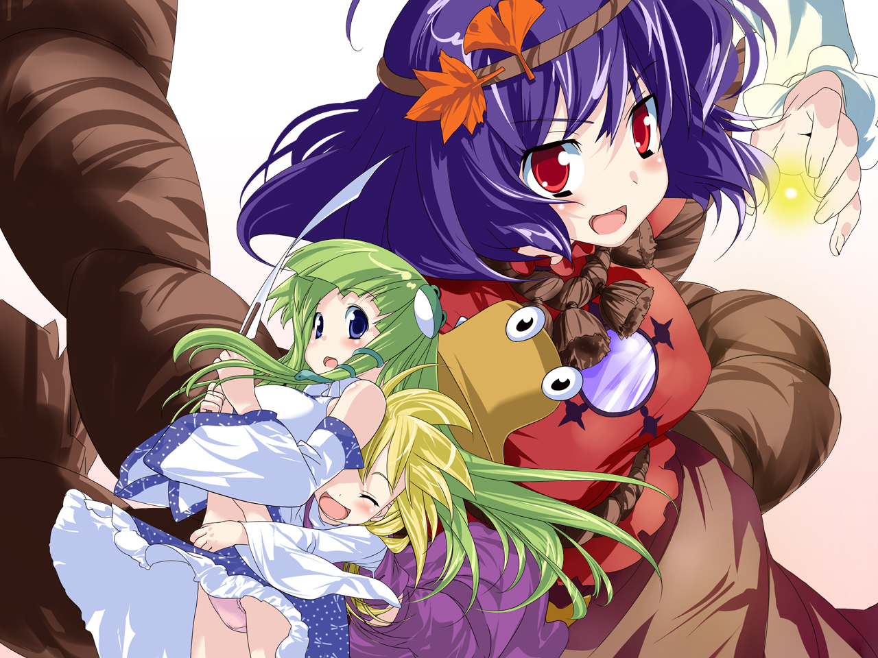 3girlsclothes liftfemale focushair ornamenthatleaf hair ornamentmultiple girlspantiespantyshotskirtskirt liftunderwear
