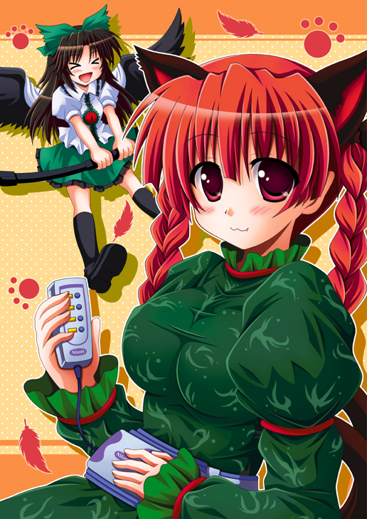 fujiwara no mokou, kamishirasawa keine, touhou, lowres, 2girls, breasts, cleavage, english text, female focus, holding hands, multiple girls, sleeping