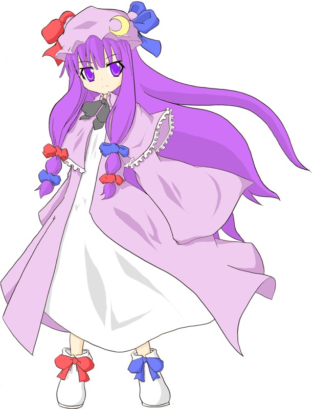 1girlbraidcrescentcrescent hat ornamentfemale focusfull bodyhathat ornamentlong hairpurple eyespurple hairsimple backgroundsolo