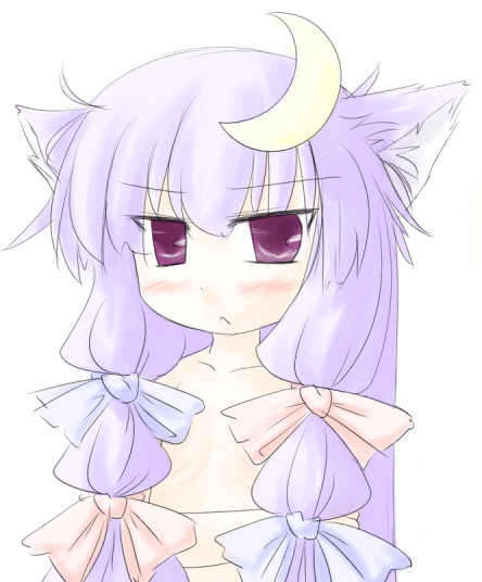 1boy1girlanimal earscat earscat girlcrescentcrescent hair ornamentfemale focushair ornamentpurple eyespurple hairsolo