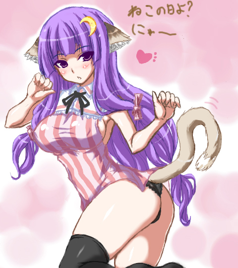 1girlanimal earsasscrescentcrescent hair ornamentfemale focushair ornamentlong hairno headwearpurple eyespurple hairsolothighhighs