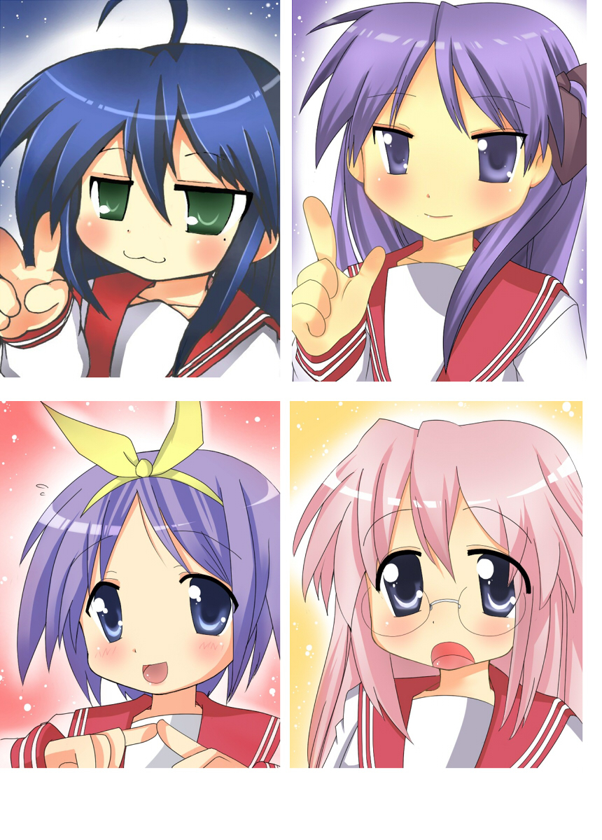:34girlsahogeblue eyesblue haircollarbonedot nosefeet out of framefemale focusglassesgreen eyeshair between eyeshair ribbonlong hairlooking at viewermolemole under eyemultiple girlsopen mouthpink hairpurple hairred sailor collarribbonryouou school uniformsailor collarschool uniformserafukushort hairsiblingssisterssmilestanding
