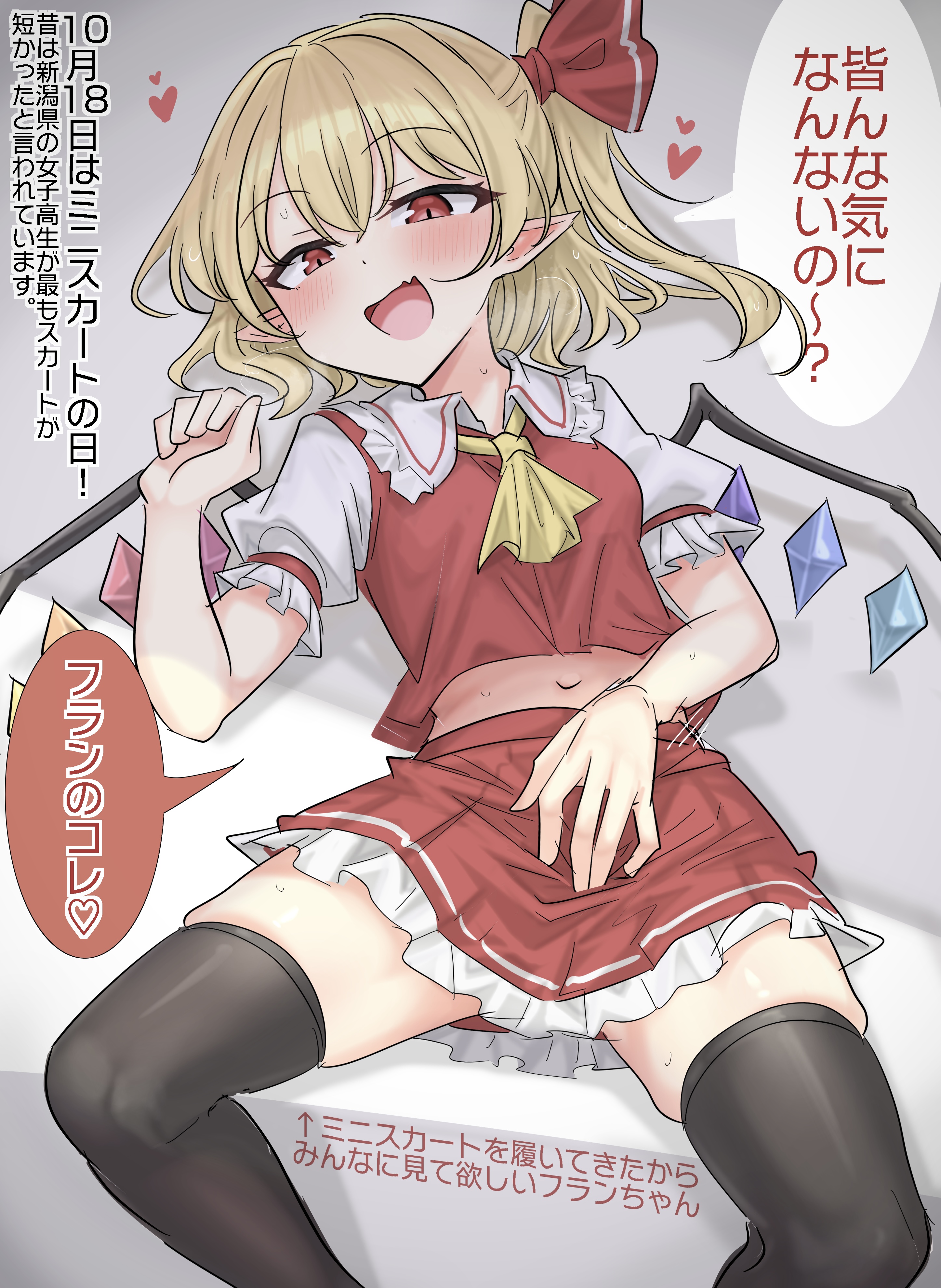 :d1girlascotblack thighhighsblonde haircrystal wingshair ribbonlyingmidriffnavelno headwearon backopen mouthpuffy short sleevespuffy sleevesred ribbonred skirtribbonshort sleevesskirtsmilespeech bubblethighhighsthighswingsyellow ascotzettai ryouiki