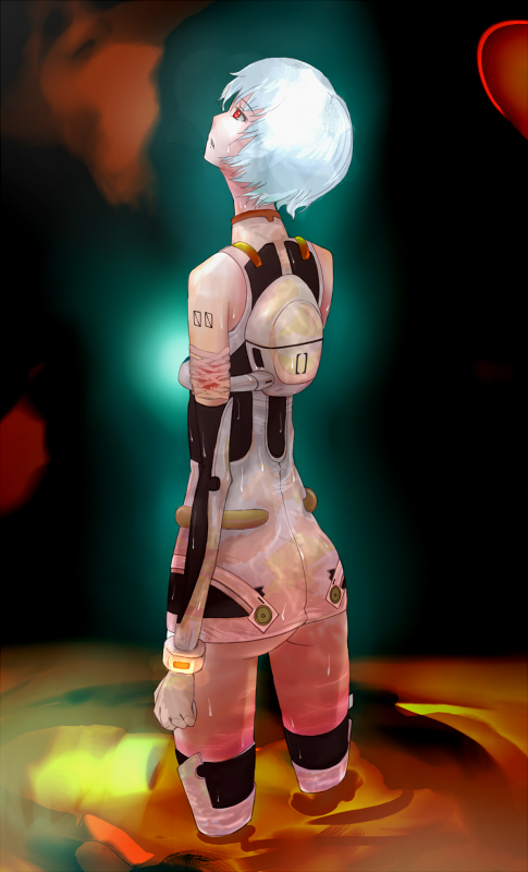 alternate costumeassbandagesblue hairlclmecha pilot suitpale skinplugsuit (evangelion)red eyesshort hairsolothighhighs