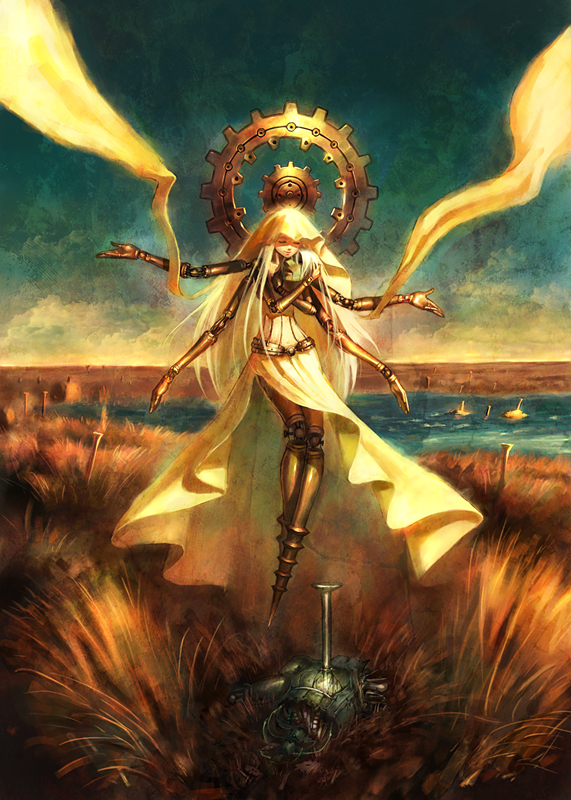 mamoru mikokoro, broken vessel (hollow knight), knight (hollow knight), hollow knight, commentary, highres, 2others, artist name, battle, broken mask, bug, cage, chasing, cloak, coiled nail (hollow knight), column, glowing, glowing eyes, holding, holding weapon, insect wings, mask, moth wings, multiple others, nail (hollow knight), no humans, pillar, rubble, spikes, underground, weapon, wings