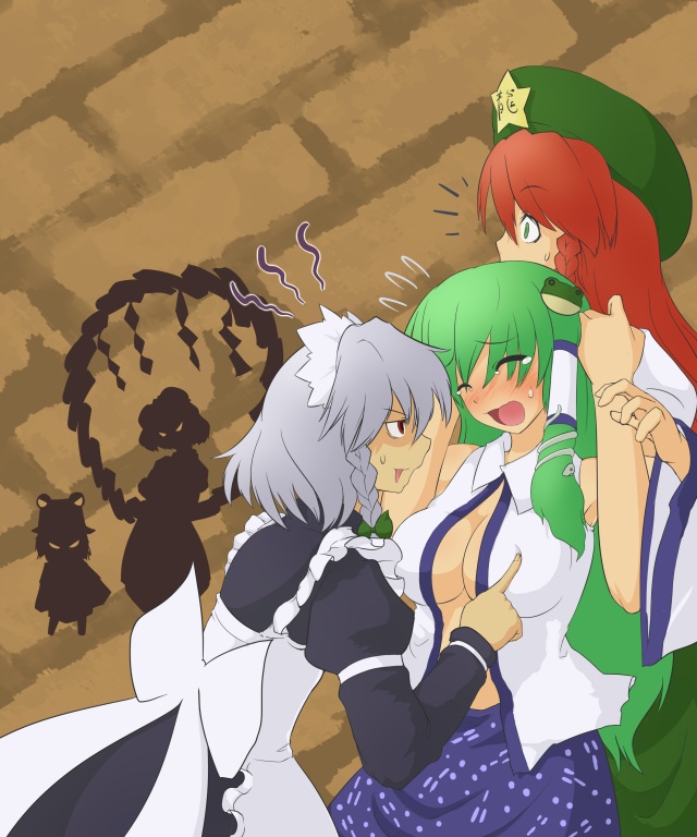 216, cirno, daiyousei, letty whiterock, touhou, bad id, bad pixiv id, 3girls, dress, female focus, flower, green hair, multiple girls, plant, skirt, wings