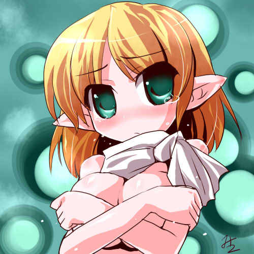 1girlblonde hairblushbreastscovering breastscovering privatesfemale focusgreen eyesnudenude coversolotears