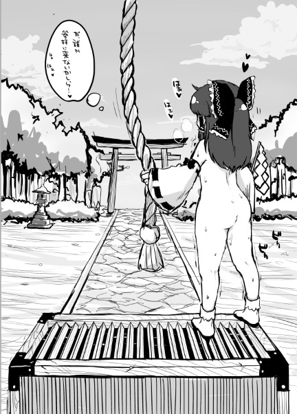 1girlassbobby socksbowboxdetached sleevesdonation boxexhibitionismfemale focusfrom behindgoheigreyscaleheavy breathingmonochromenudeon boxpublic indecencyropeshrine bellsockssolostandingstone lanternsweattoriitrembling